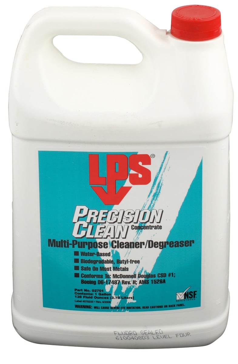 LPS Precision Clean er en vandbaseret allround afrenser/affedter, specielt udviklet til industrielt brug. Den opfylder eller overgår specifikationerne McDonnel Douglas SCD #1, Boeing D6-17487 Rev. H og AMS 1526A.