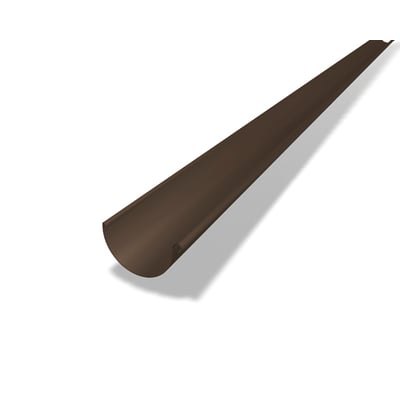 PREFA tagrende i aluminium, halvrund, 280 mm bred og 3 meter lang, i brun (RAL 7013) med P 10 nupret overflade.