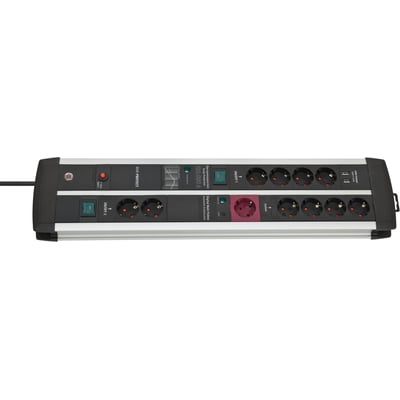 Premium-Protect-Line 11 stikdåse med 3m kabel og automatisk styring. Hovedenheden (f.eks. computer) kan inkludere underenheder (f.eks. skærm, lydsystem, printer, scanner osv.) i den automatiske styring.