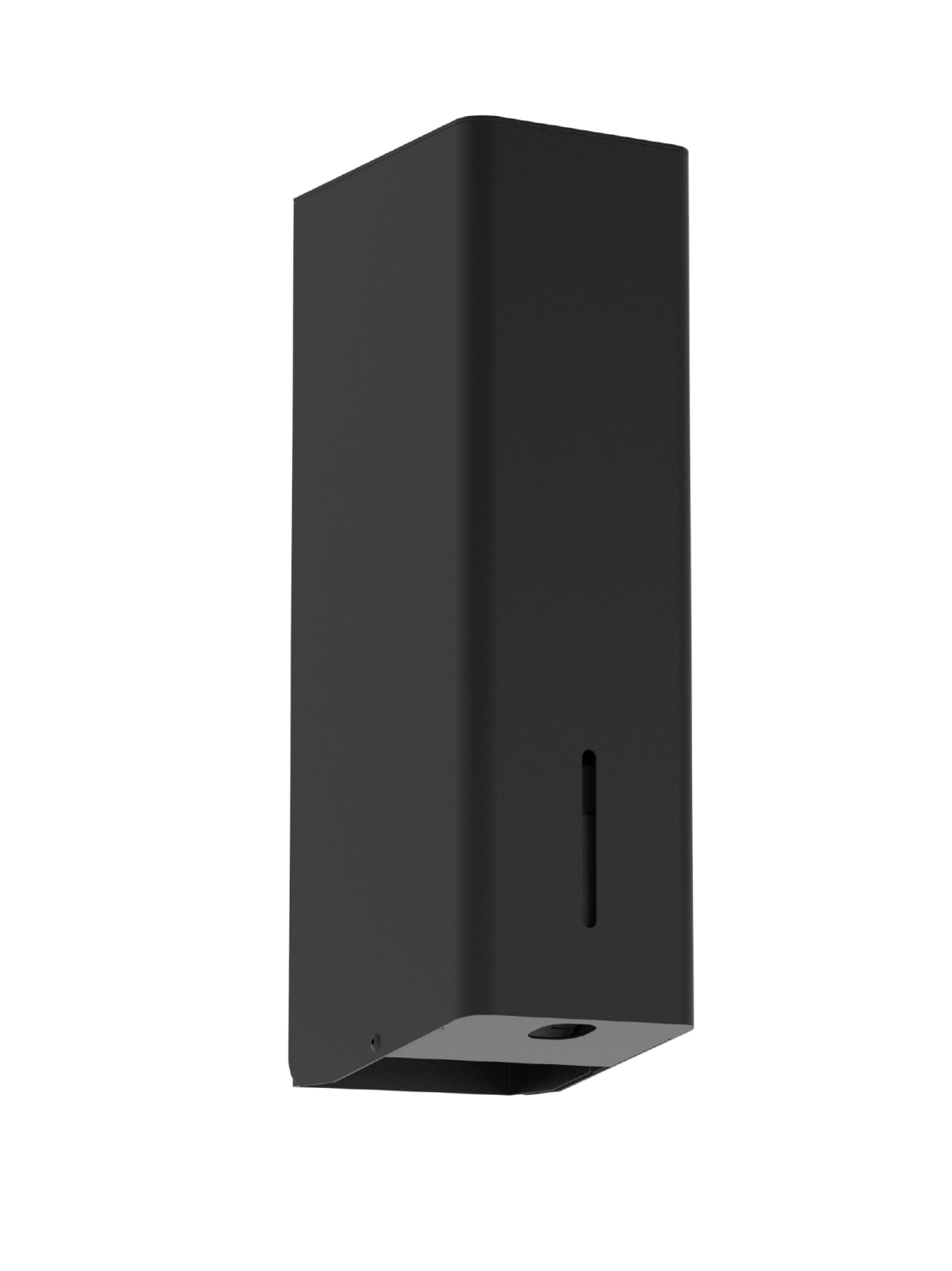 Denne sensorstyrede sæbedispenser fra Pressalit Public-serien er designet til vægmontering og tilbyder en hygiejnisk løsning til ethvert badeværelse eller toilet. Dispenseren er fremstillet i syrefast rustfrit stål med en mat sort overflade, hvilket sikrer både holdbarhed og et stilrent udtryk.