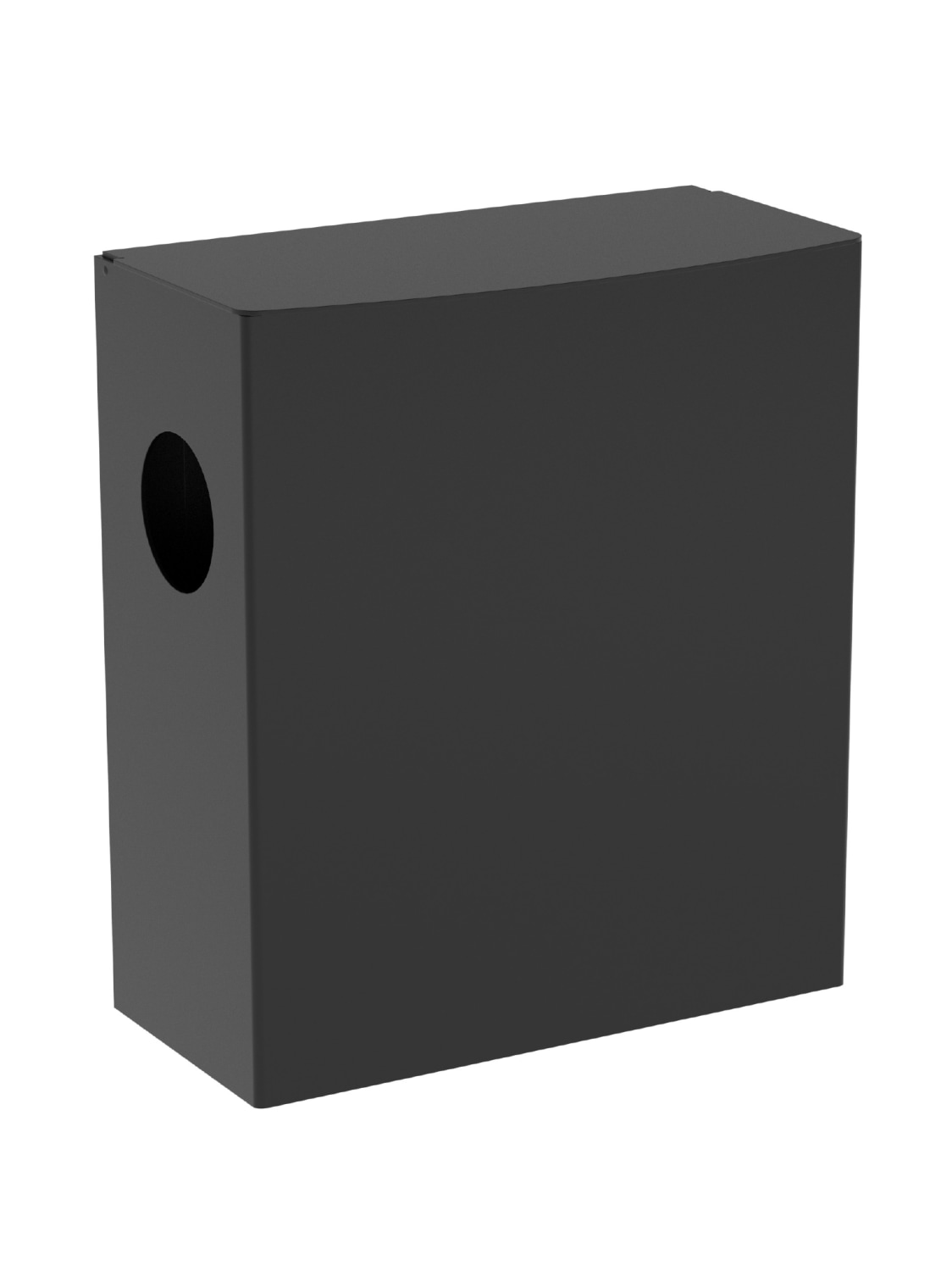 Denne vægmonterede hygiejneaffaldsspand er designet til at give en hygiejnisk og brugervenlig løsning til bortskaffelse af hygiejneaffald. Den er udført i rustfrit stål med en mat sort finish, der giver et moderne og diskret udtryk, velegnet til stilrene miljøer.