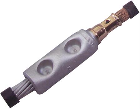 Bimetals samlemuffe AKS300-185 er designet til at skabe sikre og pålidelige forbindelser mellem aluminium- og kobberledere. Denne samlemuffe er velegnet til:
