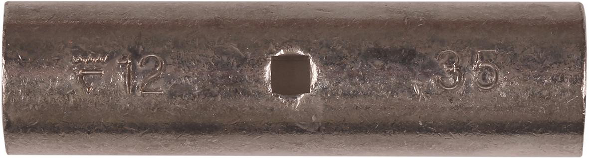 Cu-pressemuffe KST35 fra Elpress, designet til 35mm² fåtrådige kabler (klasse 2) i.h.t. IEC 60228. Fremstillet af fortinnet kobber med inspektionshul og kabelstop.