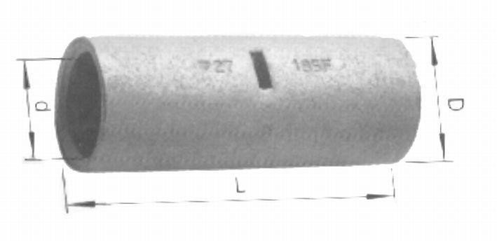 Kobber pressemuffe KSF400A. Materiale: Cu 99,95%, fortinnet Cu/Sn. Til 400mm2 få- og mangetrådige kabler iht. IEC 60228. Med inspektionshul og indvendigt kabelstop.