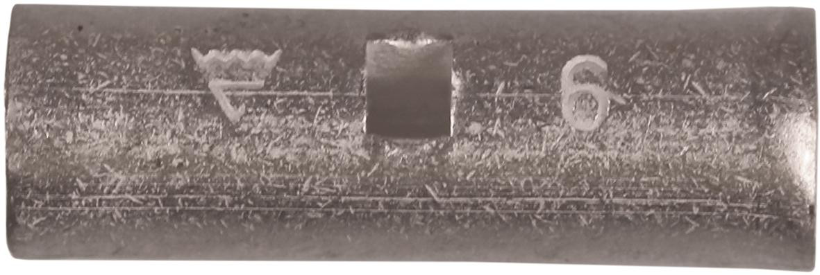 Kobber pressemuffe KS6 til elektriske installationer. Muffen er designet til at forbinde 6mm² fåtrådige (klasse 2) og mangetrådige (klasse 5) kabler i henhold til IEC 60228 standarden.