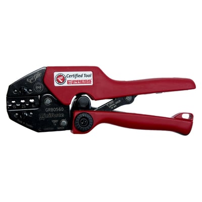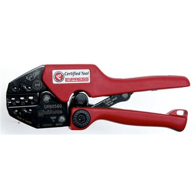 Miniforce-håndtang til rullepresning af uisolerede forbindelser 0,5-6 mm². Spærrefunktion, tydeligt mærkede pressepositioner og ergonomisk håndtag.