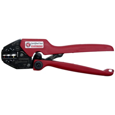 Elpress Miniforce GSW0560C håndtang til sikker presning af 0,5-6 mm² SKW muffer med varmekrymp. Testet og certificeret med tydelige mærker, ergonomisk design og lang levetid.