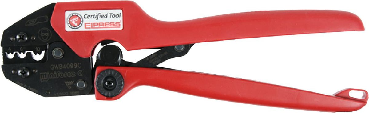 Denne testede og certificerede mekaniske Miniforce-håndtang fra Elpress er ideel til W-presning af uisolerede forbindelser. Den er velegnet til ring-, gaffel- og stiftkabelsko samt rørkabelsko og samlemuffer af typen KR og KS med en kapacitet på 4-10 mm².