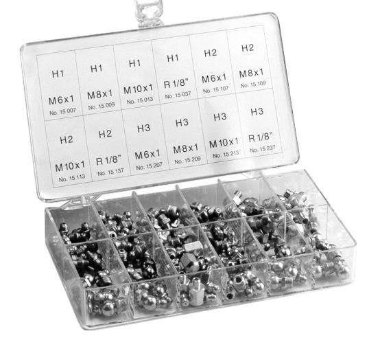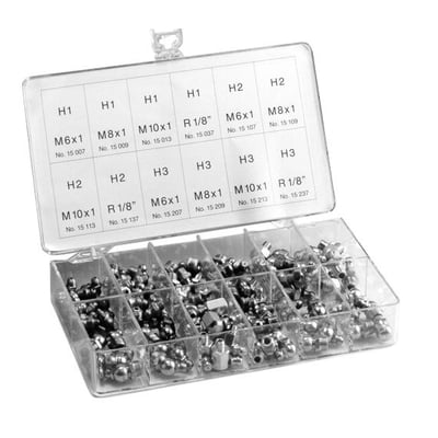 Dette smørenippel sortiment fra Pressol indeholder et udvalg af de mest anvendte smørenipler, ideelt til vedligeholdelse af maskiner og udstyr.