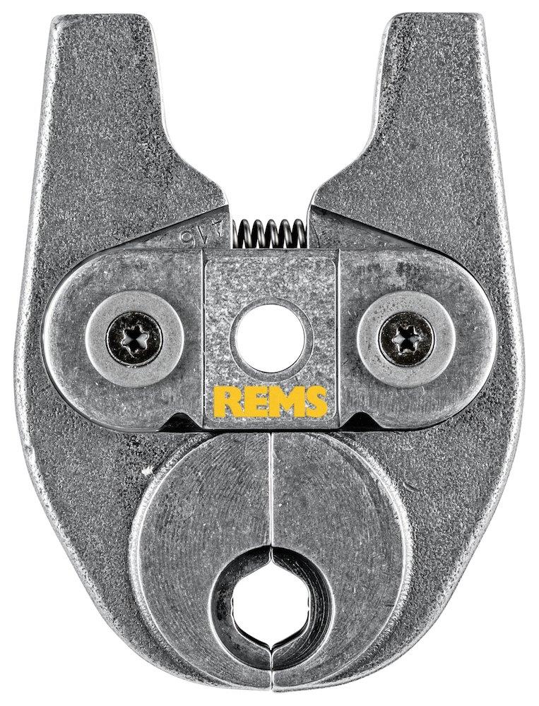 REMS pressbakke Mini/REMS pressringe er tilbehør til REMS Mini-Press. Den kompakte form og lave vægt skyldes den specielle placering af presstangtilslutningen (patent EP 1 952 948).