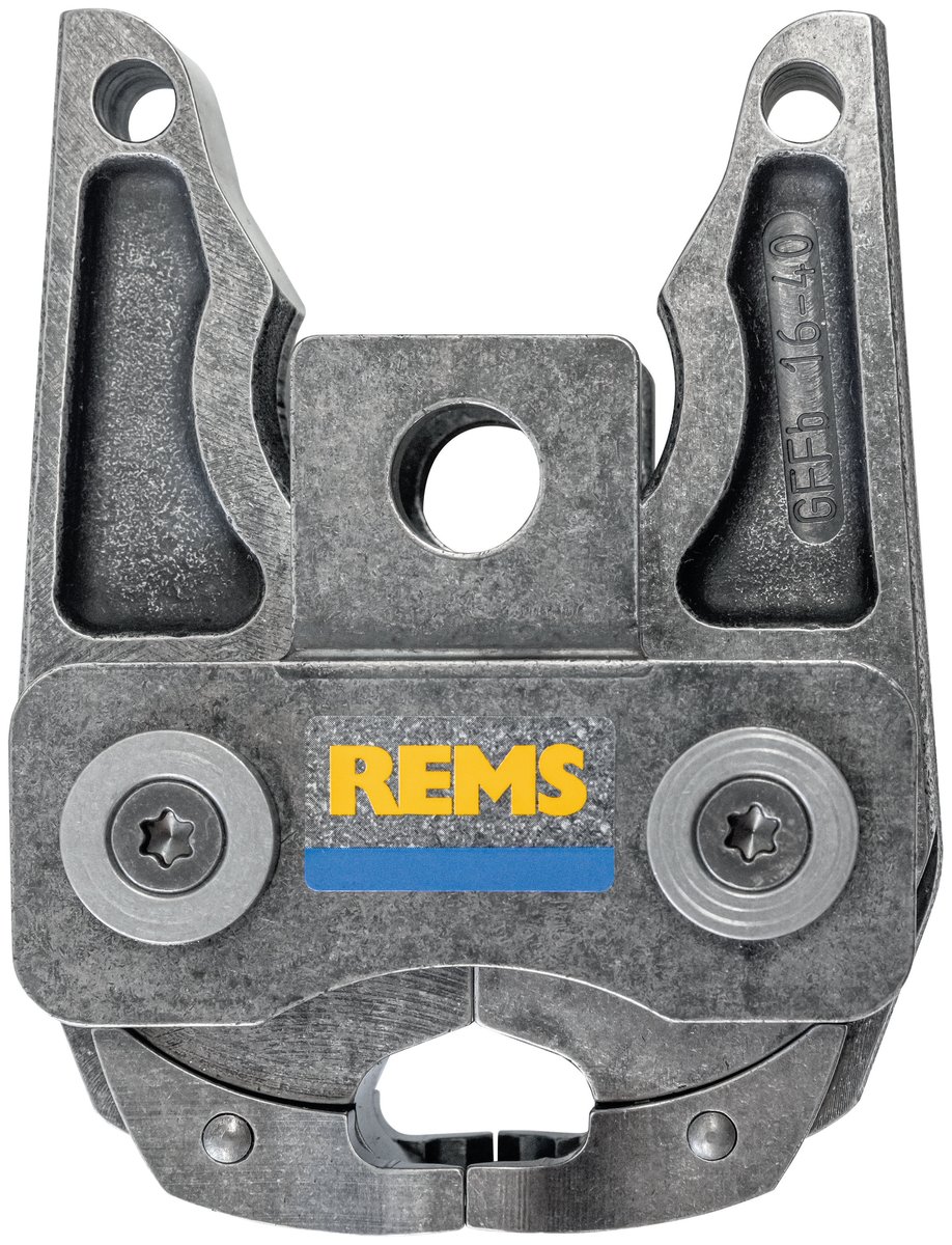 REMS presstang GFFb 16-40* er en systemspecifik presstang til Geberit FlowFit pressfittings-system, der dækker dimensionerne D 16 mm, 20 mm, 25 mm, 32 mm og 40 mm.