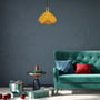 Elegant pendel i gul farve med E27 fatning. Fremstillet af metal med en bredde på 320mm og en dybde på 270mm. IP20 klassificeret.