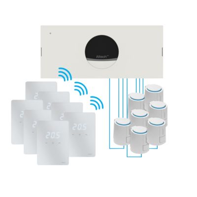 Denne pakkeløsning er designet til at give dig et komplet og programmeret trådløst gulvvarmesystem. Pakken indeholder alt, hvad du behøver for at etablere effektiv varmestyring i op til 7 zoner.