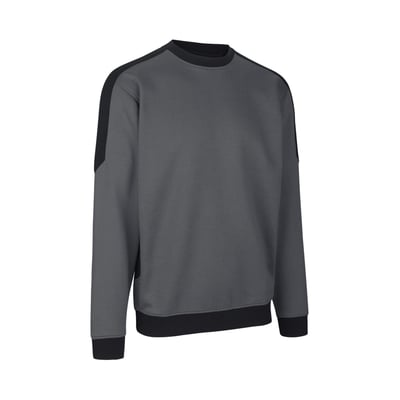 Ekstra slidstærk to-farvet sweatshirt med rund hals. Dobbeltstikninger og rib ved hals, ærme og bund. Blød børstet inderside. Forkrympningsproces for ekstra stabilitet og lang levetid.
