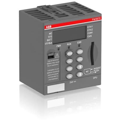Dette CPU-modul, PM5670-2ETH, er designet til avancerede automationsløsninger. Det leveres med 160MB hukommelse og en 24VDC strømforsyning.
