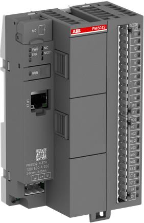 ABB AC500-eCo PM5032-R-ETH PLC med 2MB hukommelse, 12 digitale indgange, 6 relæudgange, 2 DC-udgange, Ethernet og 2 option slots. Kræver stik TA5212-TSPF eller 5212-TSCL.