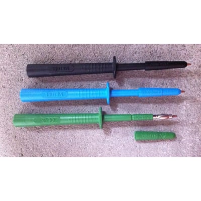 Denne blå prøvepind er designet til at blive sat i enden af en prøveledning med bananstik, hvilket gør den specielt velegnet til brug med multiinstallationstestere.