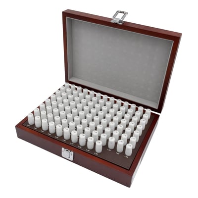 Prøvestiftsæt 15,00-20,00 mm med stigning 0,1 mm og toleranceklasse 2 (±0,002 mm). Længde: 50 mm. Til kontrol af huldiameter og afstand mellem hul og bund.