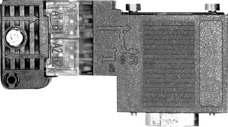 Siemens Profibus stik til 12 Mbit/s. Med 90 graders kabeludgang og skæreklemmeteknik. Dimensioner: 16 x 72,7 x 34 mm.