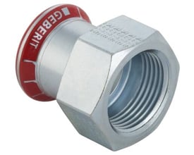 Viega Profipress bøjning 45° med muffe/nippel er fremstillet i kobber og anvendes til formstabile overflademonterede- og indbygningsinstallationer. Fittings i dimensionerne d 12, 15, 18, 22, 28, 35, 42, 54 er med SC-Contur, som betyder, at fittings, der ved en fejl ikke er blevet presset ved monteringen, er utætte ved trykprøvning.