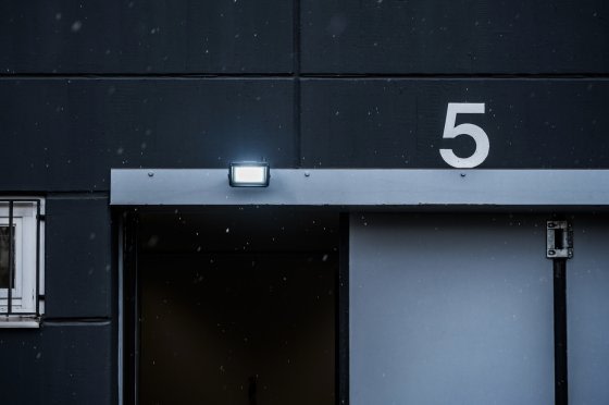 Projektøren er designet til at modstå barske forhold takket være dens IP65-klassificering, hvilket betyder, at den er beskyttet mod støv og vandstråler. Den har ingen indbygget sensor.