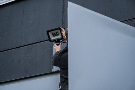 Projektøren er udstyret med en integreret sensor, der bidrager til energibesparelser ved kun at tænde lyset, når der registreres bevægelse. Med en IP65-klassificering er projektøren beskyttet mod støv og kraftige vandstråler, hvilket gør den ideel til udendørs installationer, hvor den kan modstå forskellige vejrforhold.