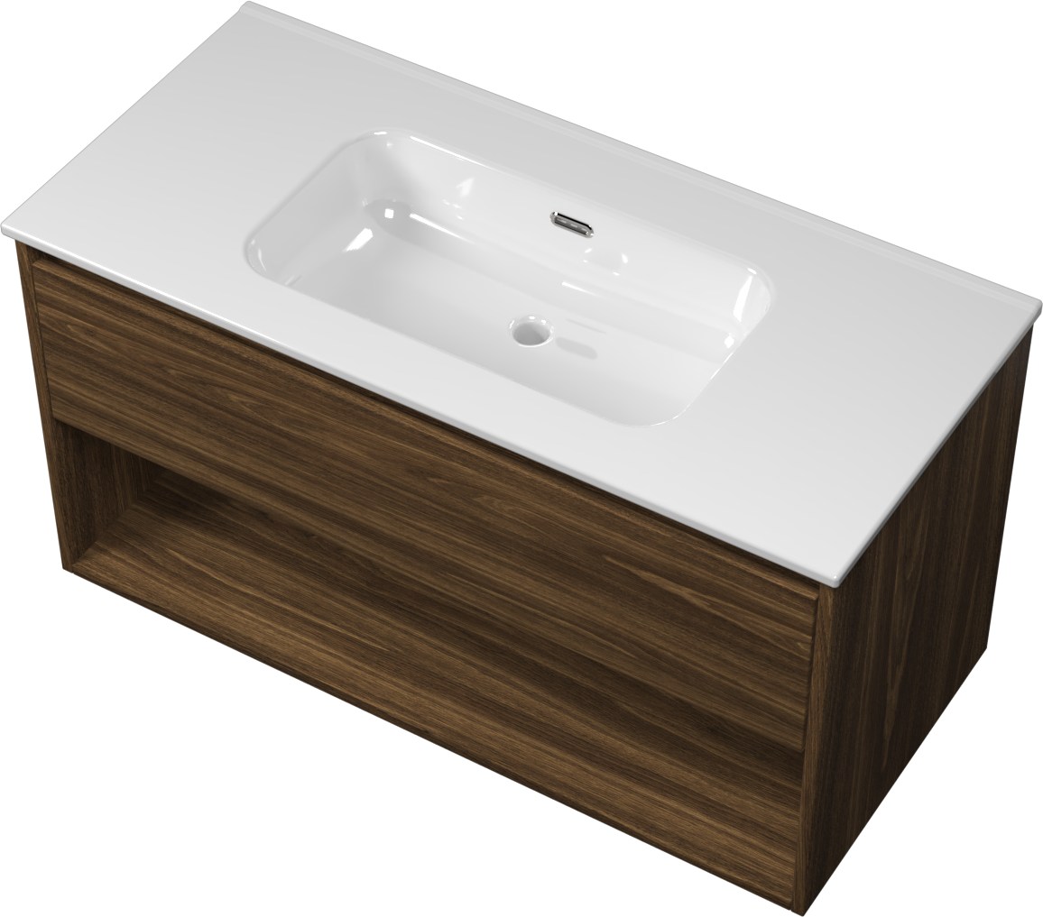 Sanibell Proline møbelsæt i cabana eg med 1 skuffe og 1 åben hylde. Mål: 101x46 cm. Med soft close og integreret greb.