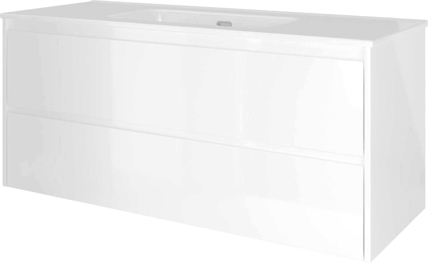 Elegant Proline møbelsæt i hvid højglans med softclose skuffer. Dimensioner: 121x46 cm.