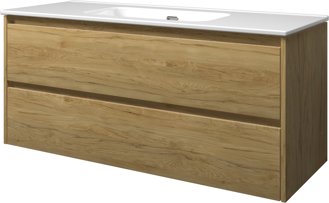 Sanibell Proline møbelsæt i ideal eg med softclose skuffer. Bredde: 121 cm, Dybde: 46 cm, Højde: 54 cm.