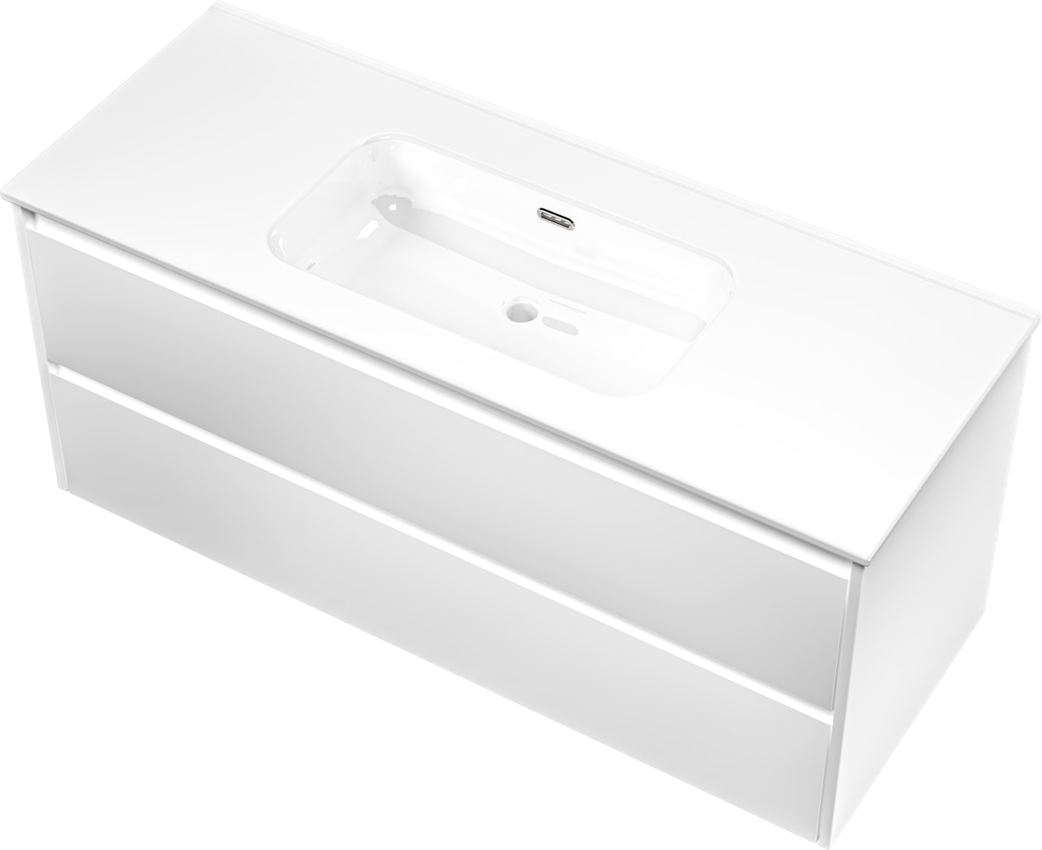 Sanibell Proline møbelsæt i mathvid med softclose skuffer. Dimensioner: 121x46 cm.
