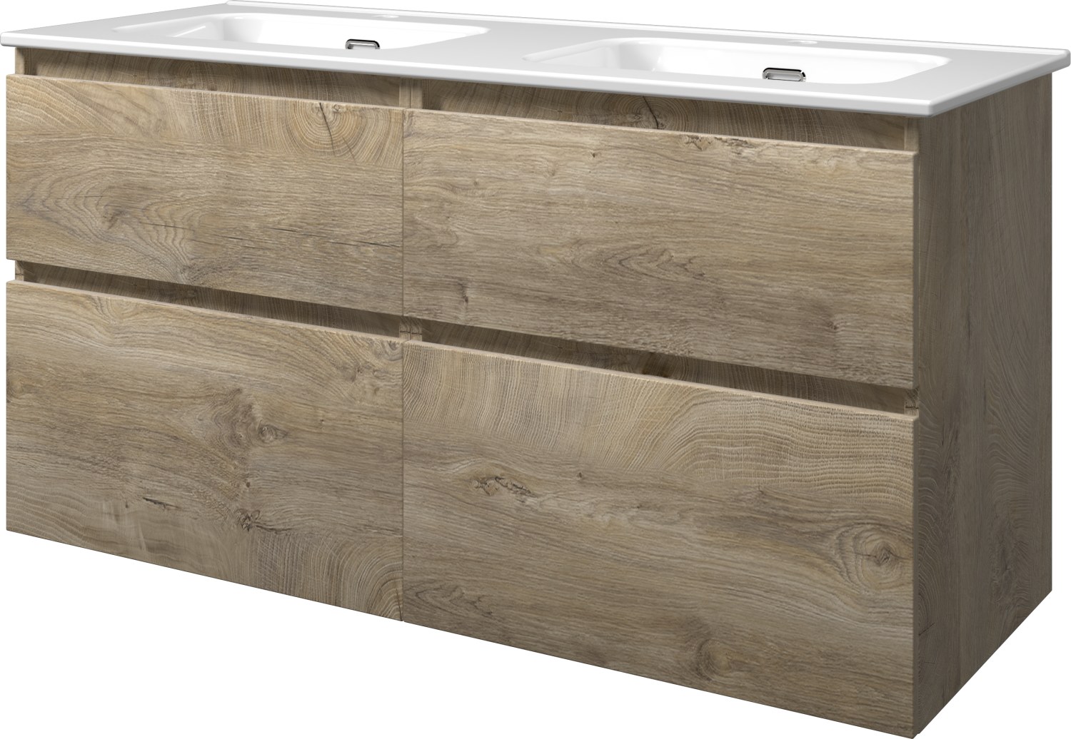 Sanibell Proline møbelsæt i rå eg med softclose skuffer. Dimensioner: 121x46 cm.