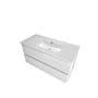 Sanibell Proline møbelsæt på 121x46,8 cm i lakeret hvid højglans med lodrette lameller. Møbelsættet består af et skab med 2 grebsfrie softclose skuffer samt en porcelænsvask uden hanehul.