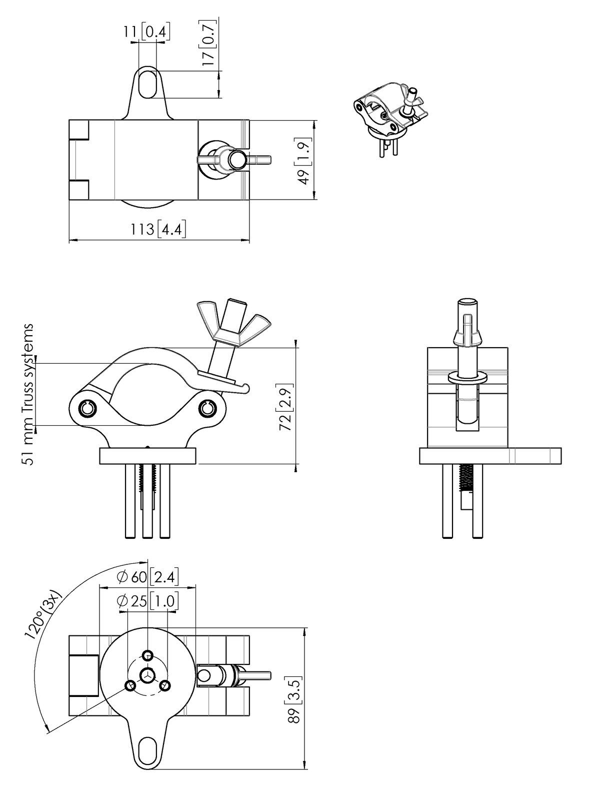 Adapter til montering af PUC 24XX på truss systemer. Sikrer stabil og sikker ophængning.