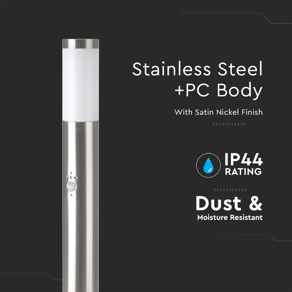 Elegant 80cm havelampe i rustfrit stål med IP44-klassifikation. Udstyret med E27 fatning og integreret sensor.