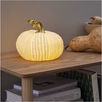 Dekorativt keramik græskar fra Star Trading, der lyser med et varmt hvidt lys. Perfekt til indendørs brug.