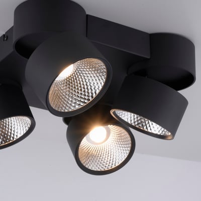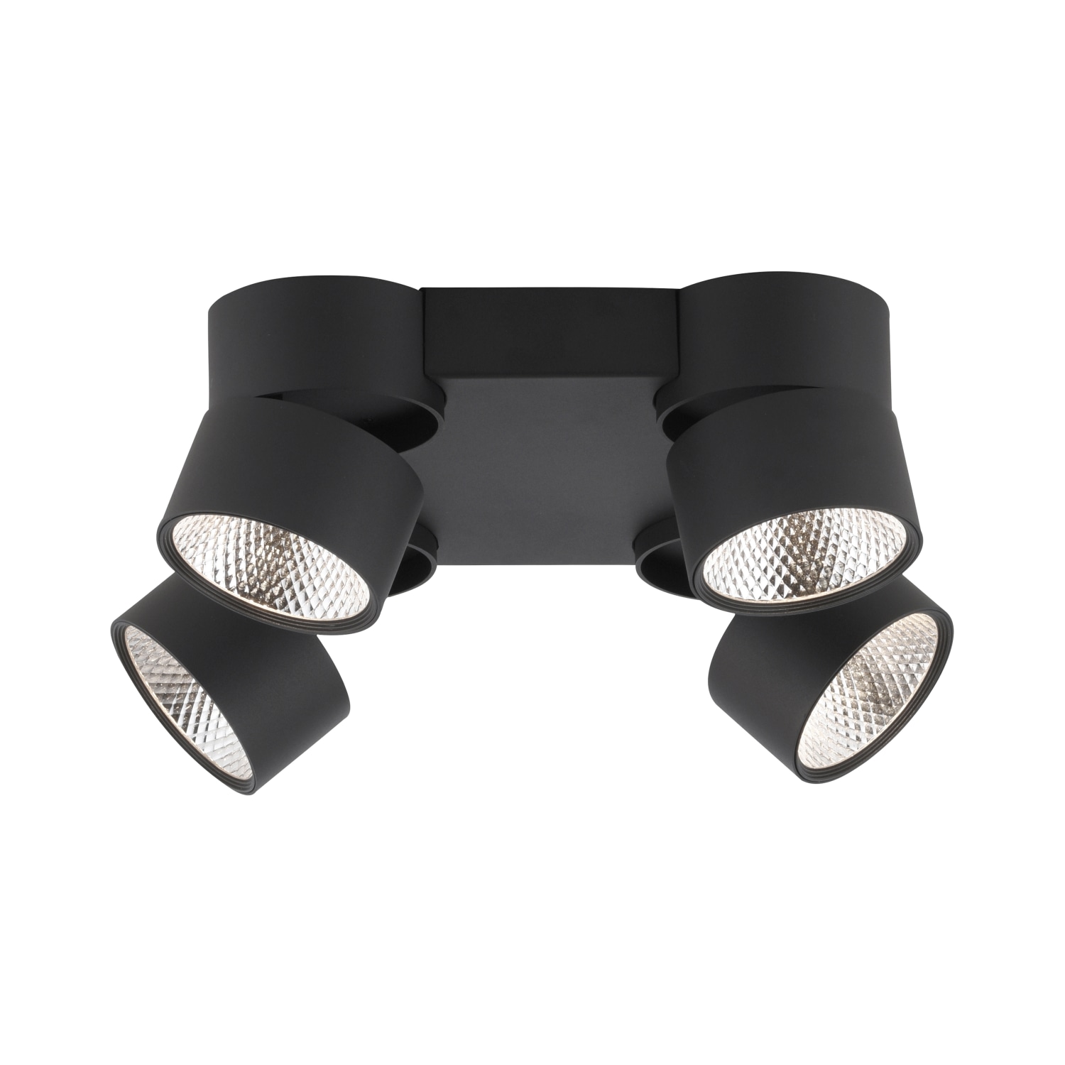 Sort Pure-Nola 4-loftspot med justerbar lysretning og trinvis dæmpning via almindelig kontakt. Perfekt til indendørs brug.