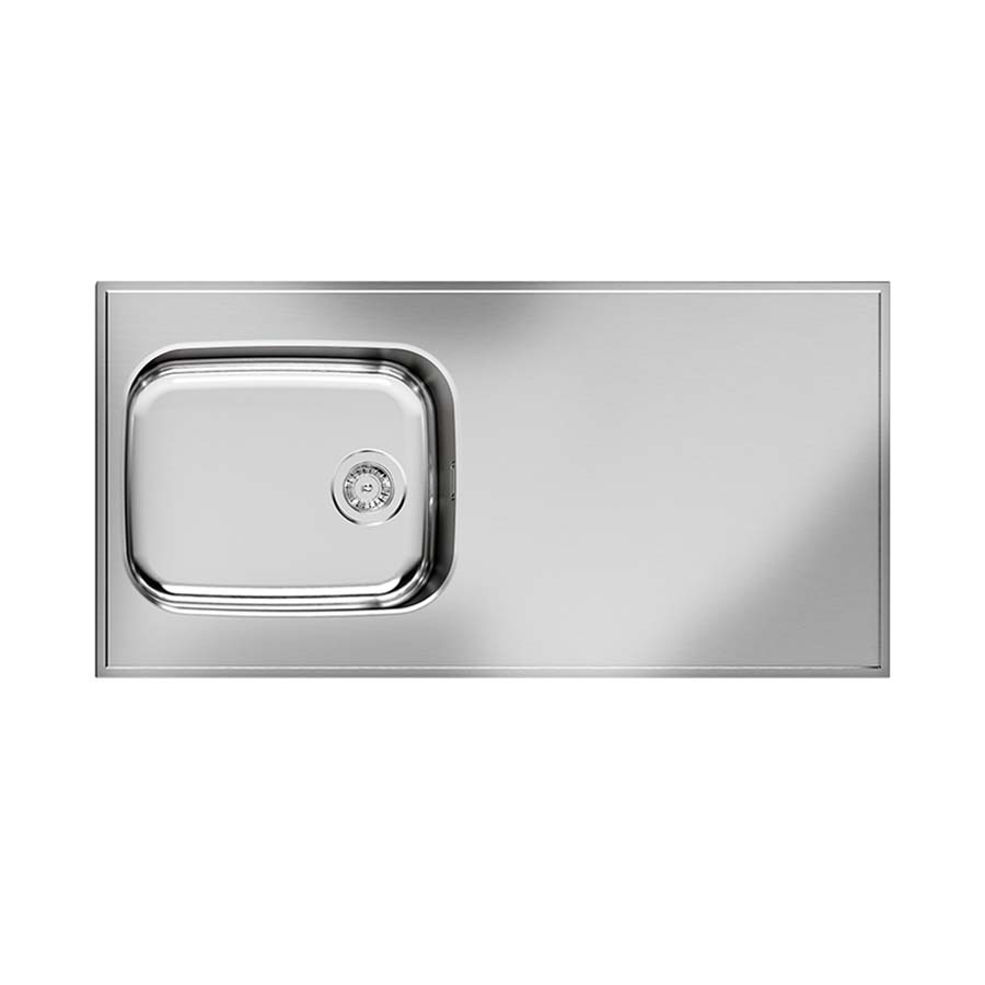 Vendbar bordplade med vask (500x400x200 mm), komplet med bundventil og vandlås. Skabsbredde: 60 cm, udvendige mål: 1200x600x30 mm, afløbsmål: 97 mm.