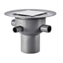 Purus Multiflex Ø110 mm gulvafløb med lodret udløb, flange til smøremembran og klinkerist (TILE insert). Med justerbar højde, vip og roterbar flange. Til betongulv.