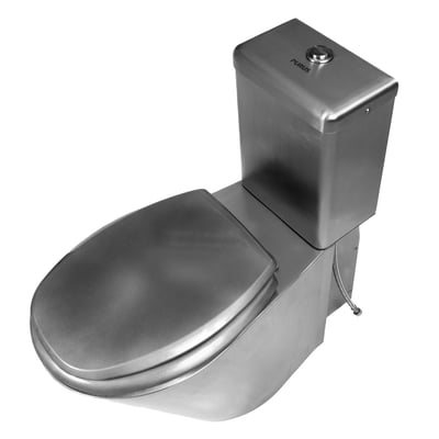 Gulvstående toilet V130 fra Purus, udført i rustfrit stål, er designet til gulvmontering med et Ø110 mm afløb og en ½" vandtilslutning. Toilettets yderside er børstet, mens den indvendige cisterne er poleret/blank. Leveres inklusive toiletsæde.