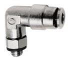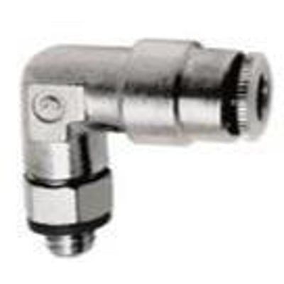 Pneufit 10 PUSH-IN vinkel indskruning vridbar nippel messing, forniklet Gevinddiameter 5 mm Udv. slangediameter 4mm.