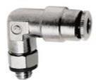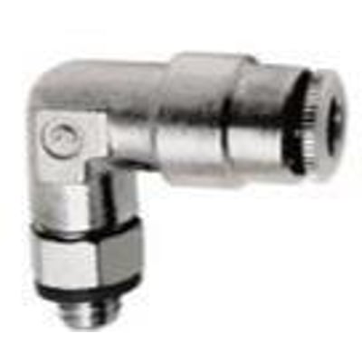 Pneufit 10 PUSH-IN vinkel indskruning vridbar nippel messing, forniklet Gevinddiameter 5 mm Udv. slangediameter 6mm.