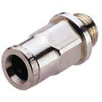 Pneufit 10 PUSH-IN lige indskruning nippel messing, forniklet Gevinddiameter 5 mm Udv. slangediameter 4mm.