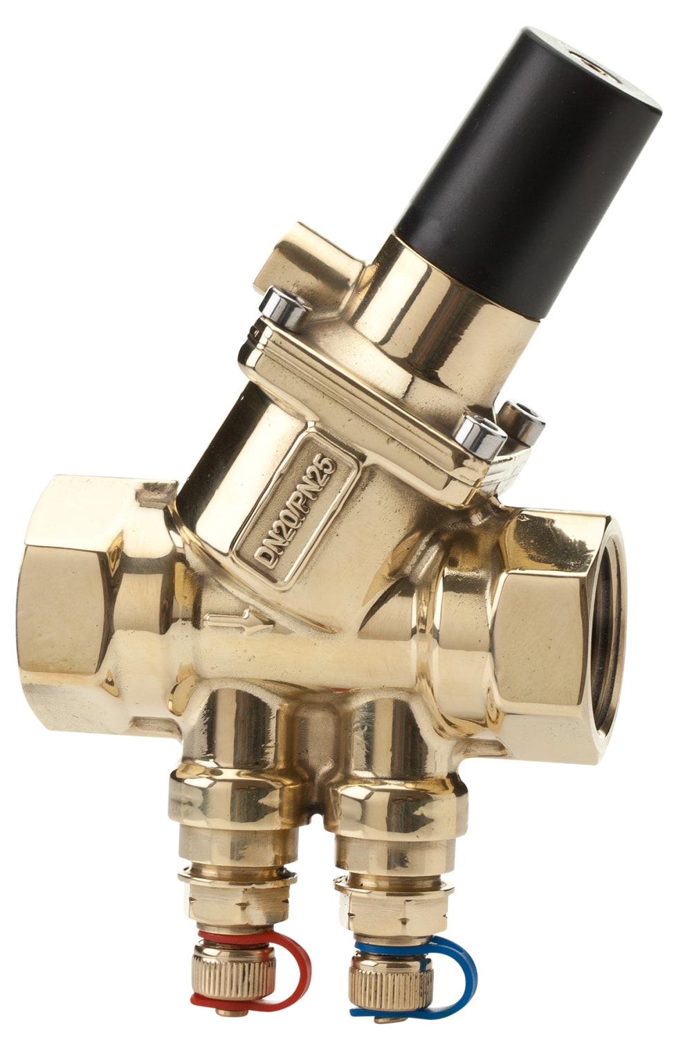 Dynamisk differenstrykregulator der sikrer problemfri justering af systemet. Effektiv modulerende kontrol og reducerer støj. Forindstilles med 4 mm unbrakonøgle.