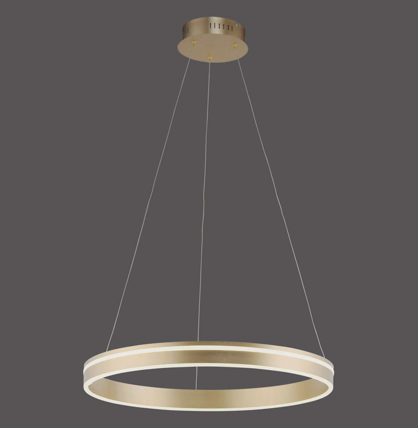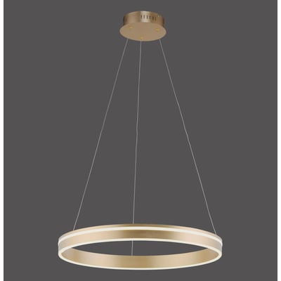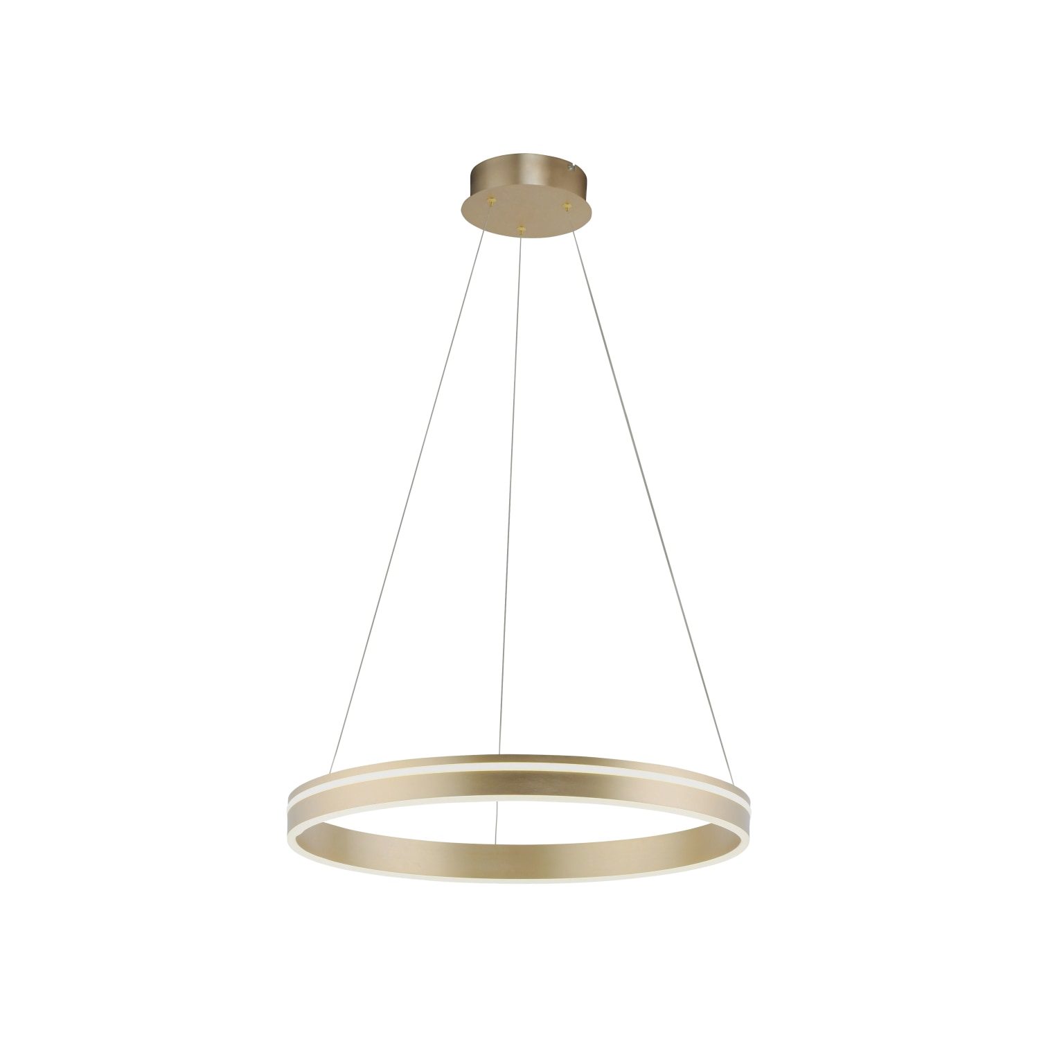 Q-Vito LED pendel i messing design med en enkelt ring og en diameter på 590 mm. Denne lysekrone er ideel til indendørs brug og tilføjer et stilfuldt touch til ethvert rum.
