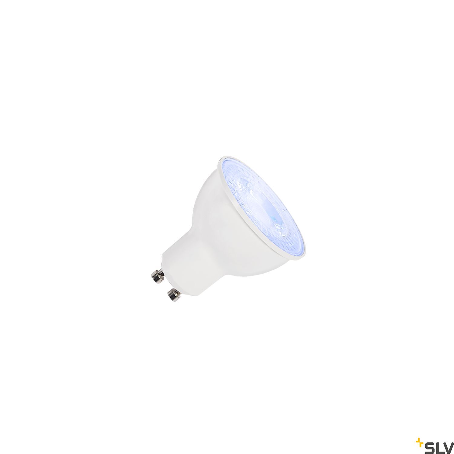 Smart QPAR51 GU10 RGBW LED pære fra SLV med en effekt på 5.2 W, CRI 90 og en spredningsvinkel på 38°.