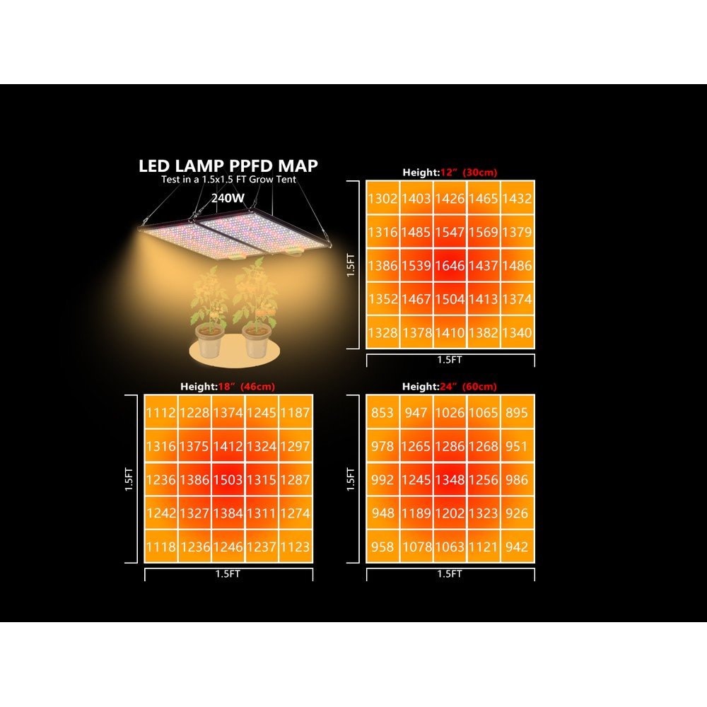 Quantum vækstlampen på 240W er designet til at give dine planter optimale vækstbetingelser indendørs. Med et fuldt spektrum lys understøtter den alle stadier af plantens livscyklus, fra spiring til blomstring. Lampen leverer en imponerende lysstyrke på 27000 lumen og en spredningsvinkel på 120°, hvilket sikrer en jævn og effektiv belysning over et stort område.