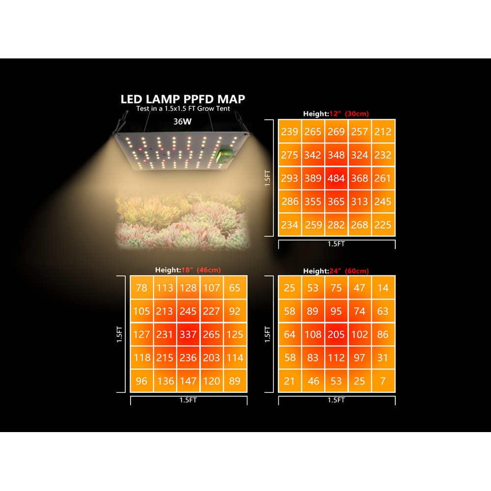 Quantum vækstlampe på 28W med fuldt spektrum lys, designet til effektiv plantevækst. Med IP65-klassificering er den velegnet til fugtige miljøer. Inkluderer ophæng og er uden blæser for lydløs drift.