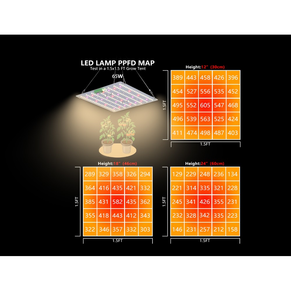 Quantum vækstlampen på 65W er designet til at give dine planter det optimale lysspektrum til vækst. Med et fuldt spektrum og en høj Ra-værdi på over 90Ra, sikrer lampen en naturlig og effektiv lysoplevelse for planter. Lampen er uden blæser, hvilket bidrager til en støjsvag drift.