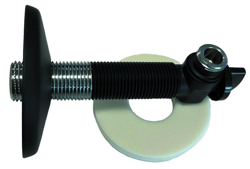 QuickBox® vinkelventil i sortlakeret design med 1/2" og 3/8" gevind samt afspærringsfunktion.