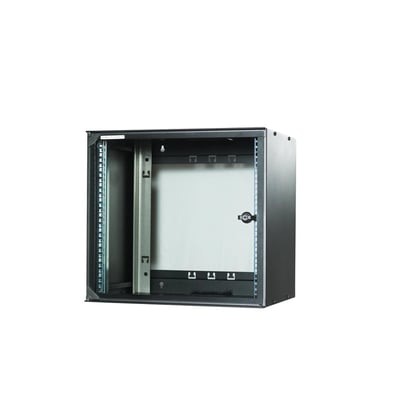MINIRACK vægrack med glasdør, 15HE, (BxHxD) 541 x 723 x 404 mm. Maks. apparatdybde 345 mm. Leveres i RAL 9005, sort.
